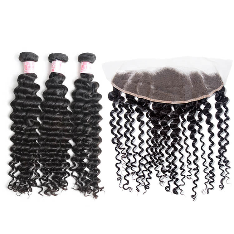 Bosun 9A 3 Bundles Deep Wave Hair With 13×4 HD 13x6 HD Lace Frontal