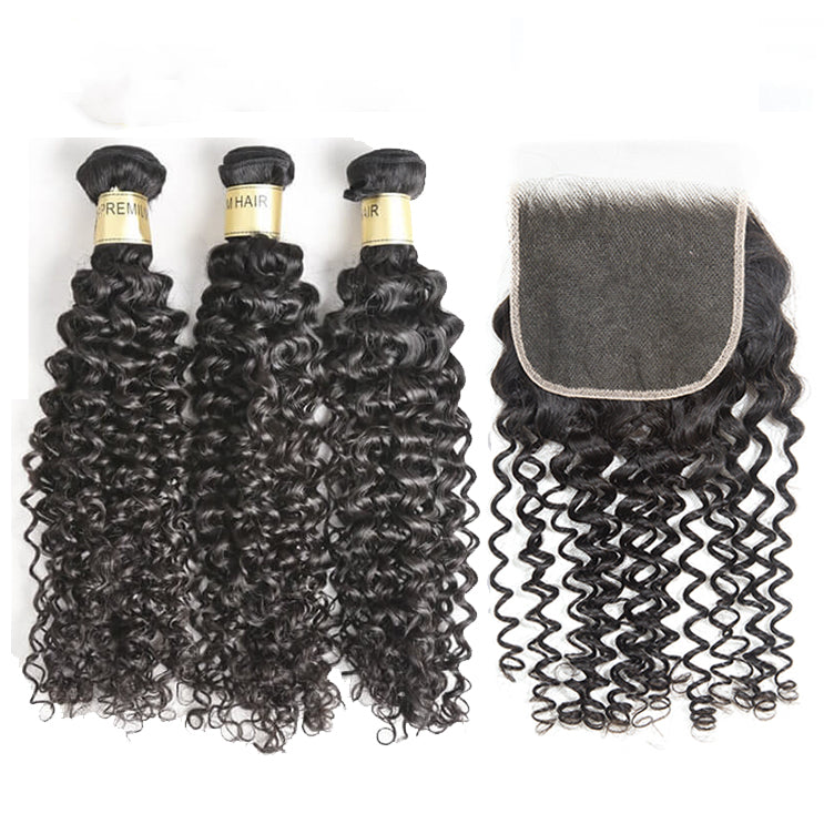Bosun Hair 12A Raw Quality 3 Bundles Curly Hair With 4x4 5x5 HD Lace Closure