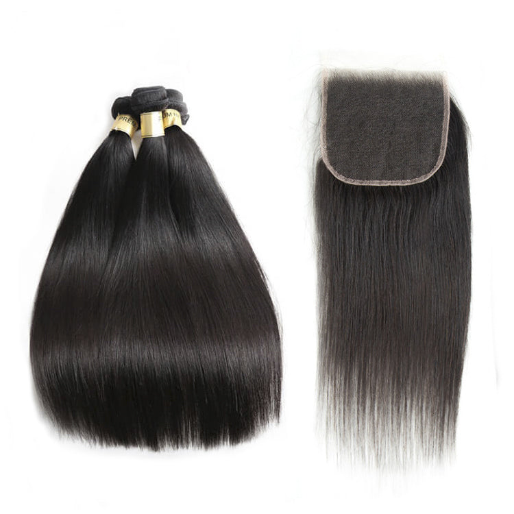 Bosun Hair 12A Raw Quality 3 Bundles Straight Hair With 4x4 5x5 HD Lace Closure
