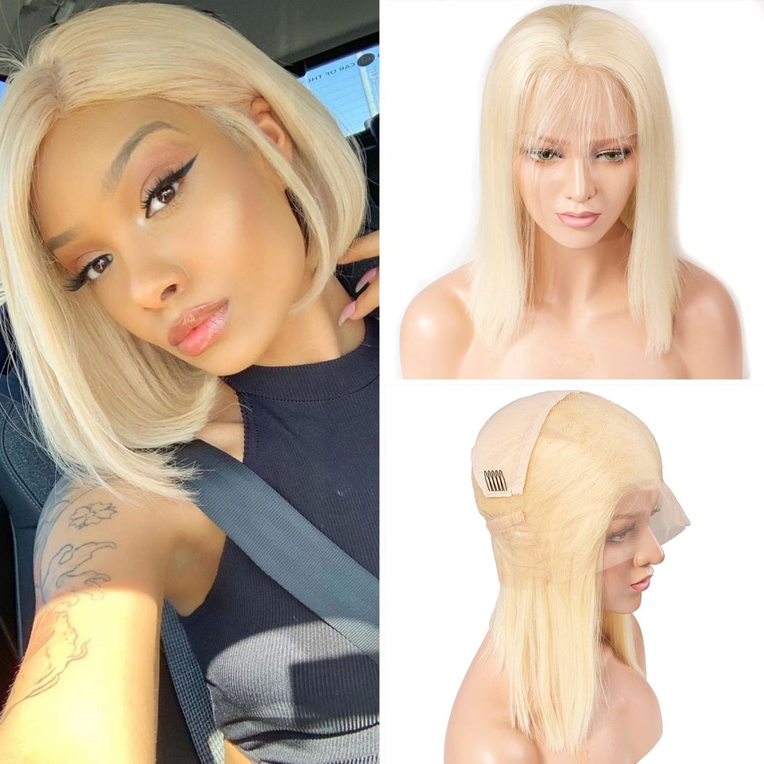 613 Blonde Transparent Full Lace Short Bob Wigs Straight Bob Wig
