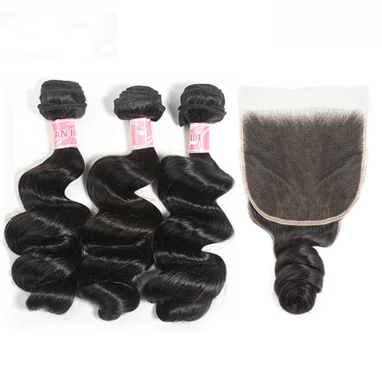 Bosun Hair 10A Top Selling 3 Bundles Loose Wave Hair With 4x4 5x5 HD Lace Closure