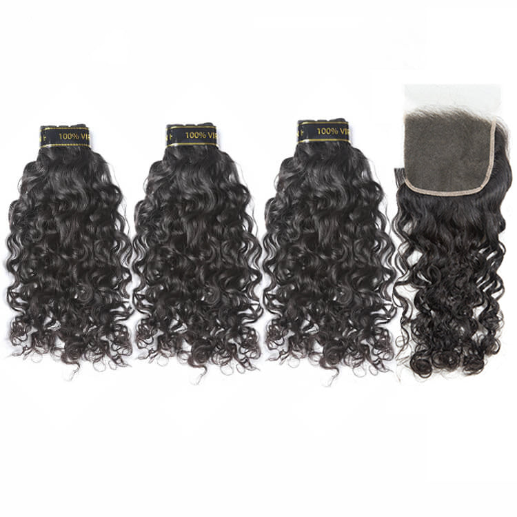 Bosun Hair 9A Hot Selling 3 Bundles Water Wave Hair With 4x4 5x5 HD Lace Closure