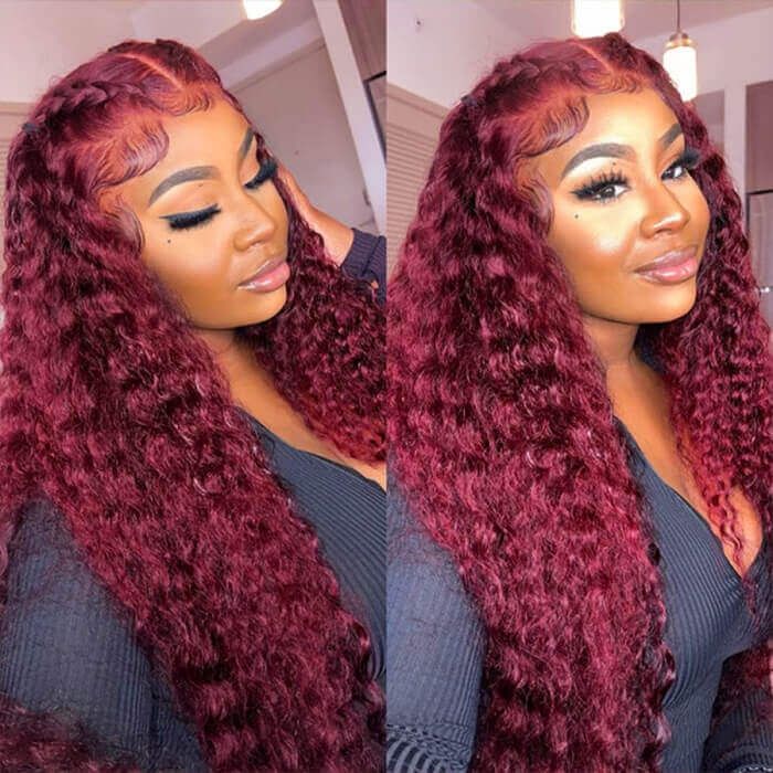 Bosun Hair 99J Burgundy Colored 4x4 13x4 HD Lace Front Wigs Deep Wave Human Hair Wig