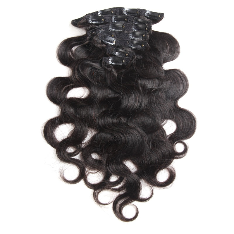 Body Wave Clip Ins Hair Extensions 100% Human Hair Natural Black Color