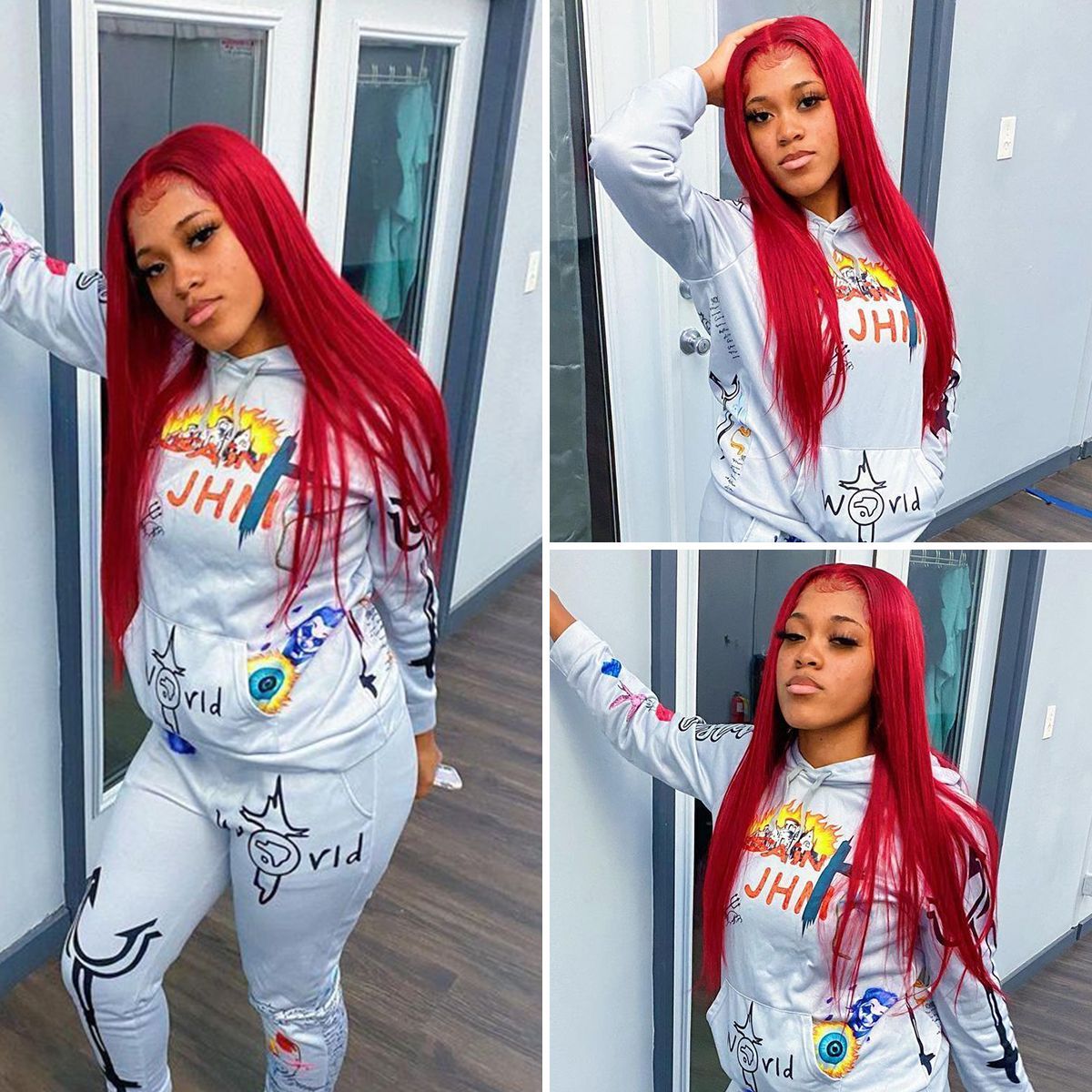 Wig Style Bosun Hair 13×4 Red Straight Lace Frontal Closure Wig