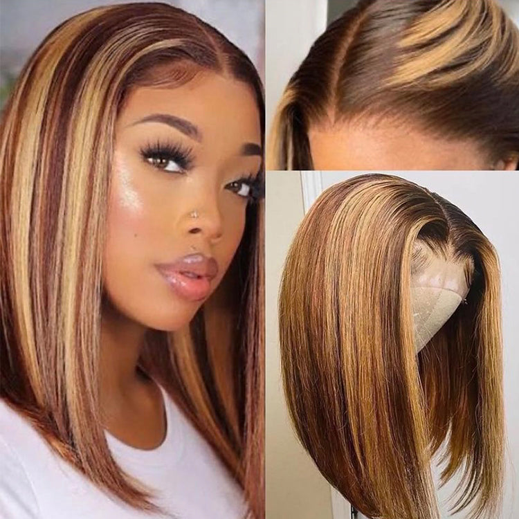 Item: 100% Real Human Hair Wigs Ombre Color Honey Blonde Highlight Short Straight Bob Virgin Human Hair Wig 4/27 Highlight Straight Human Hair Lace Frontal Wig In Stock 150% Density