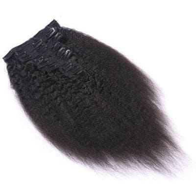 Clip-ins hair, 100% human hair, kinky straight texture.