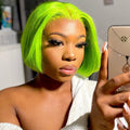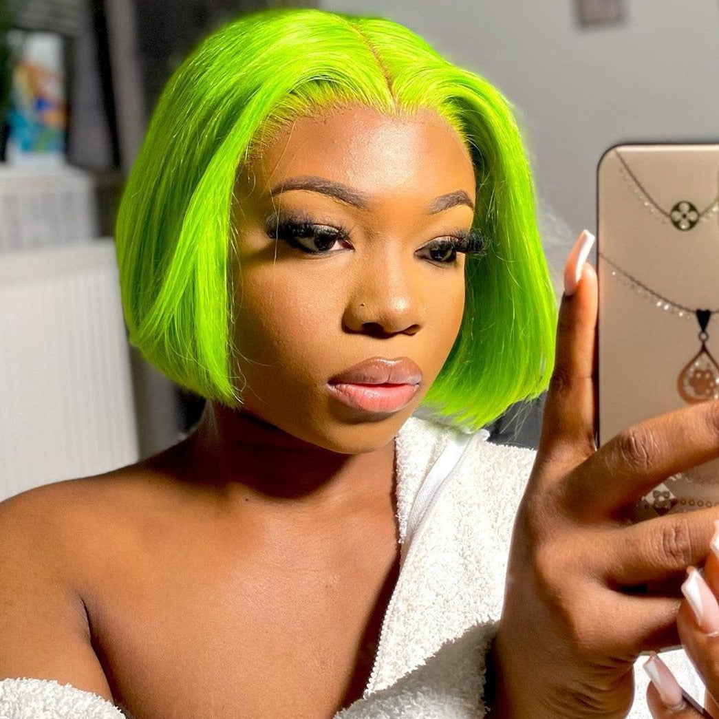 Wig Style Bosun Hair Light Green Straight Hair Bob Lace Wigs